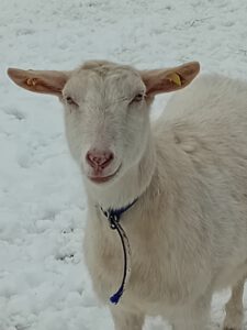 Ziege "Heidi" ist im November 2025 eingezogen (weiß).